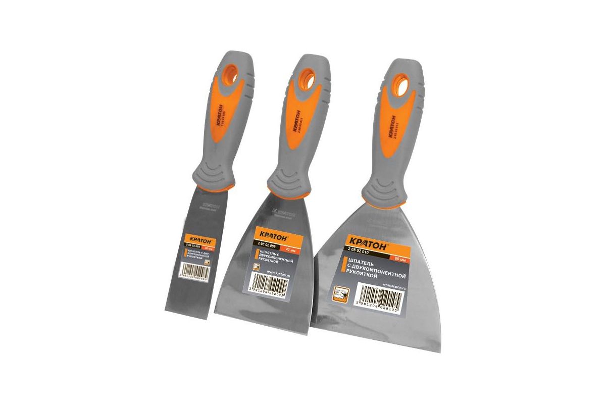 Шпатель Кратон нержавеющий с двукомпонентной рукояткой 80 мм