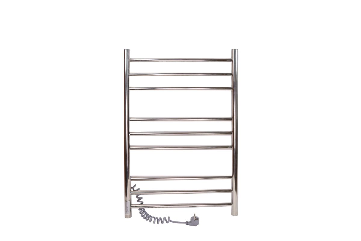 Электрический энергосберегающий полотенцесушитель Line Trinity торговой марки INDIGO с круглым коллектором, девятью прямыми перекладинами нестандартной группировки, и микропроцессором. Высота изделия 80 см, ширина - 50 см. На стойке расположен микропроцессорный таймер с кнопкой включения/выключения. Витой шнур органично смотрится с полотенцесушителем. Благодаря переходнику, полотенцесушитель имеет возможность скрытого подключения. Минималистичный дизайн и простота конструкции избавят вас от лишних проводов и сделают полотенцесушитель частью дизайнерского элемента в интерьере. Материал: пищевая нержавеющая сталь марки AISI 304. Тип нагревательного элемента: сухой тэн. Потребляемая мощность 74 Вт. Время нагрева - 15 мин. Защита от перегрева.